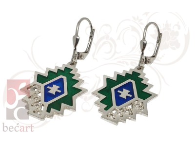Srebrene naušnice sa motivom sa bosanskog ćilima iz kolekcije "ColorUp". Naušnice su izrađene u kombinaciji tradicionalne tehnike filigrana sa detaljima u boji koji im daju vrlo moderan i atraktivan izgled. Mogu se naručiti u boji srebra ili sa pozlatom.