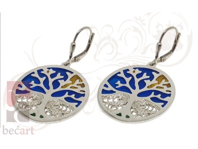 Srebrene naušnice Drvo života iz kolekcije "ColorUp". Naušnice su izrađene u kombinaciji tradicionalne tehnike filigrana sa detaljima u boji koji im daju vrlo moderan i atraktivan izgled. Mogu se naručiti u boji srebra ili sa pozlatom.