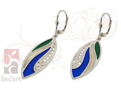 Srebrene naušnice Talasi iz kolekcije "ColorUp". Naušnice su izrađene u kombinaciji tradicionalne tehnike filigrana sa detaljima u boji koji im daju vrlo moderan i atraktivan izgled. Mogu se naručiti u boji srebra ili sa pozlatom.