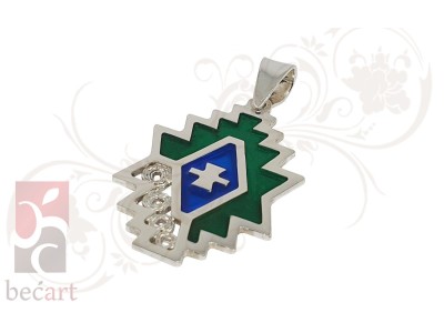 Srebreni privjesak sa motivom bosanskog ćilima iz kolekcije "ColorUp". Privjesak je izrađen u kombinaciji tradicionalne tehnike filigrana sa detaljima u boji koji mu daju vrlo moderan i atraktivan izgled. Može se naručiti u boji srebra ili sa pozlatom.