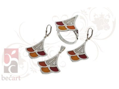 Srebreni set sa motivom zvončića iz kolekcije "ColorUp". set je izrađen u kombinaciji tradicionalne tehnike filigrana sa detaljima u boji koji mu daju vrlo moderan i atraktivan izgled. Može se naručiti u boji srebra ili sa pozlatom.